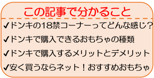 そんなことを考えて、まだアダルトコーナーに足を踏み入れていない人のために、ドンキの18禁コーナーはどんな場所なのか?!を解説します。