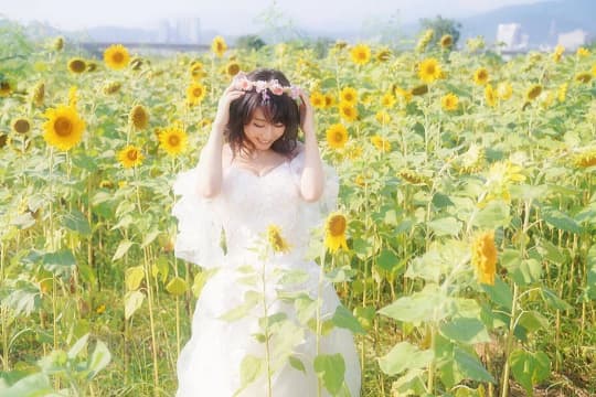 ひまわり畑の中にいるあやみ旬果さんです!妖艶な雰囲気でとても魅力的な一枚です。
