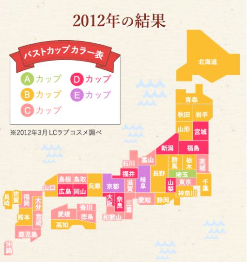 上は同じWEBサイトが2012年に実施した同じアンケート項目の回答を表にしたもの。いってみればバストサイズの定点観測ですね。