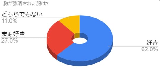上の表で明らかなように、男の9割以上がおっぱい強調に好意的です。