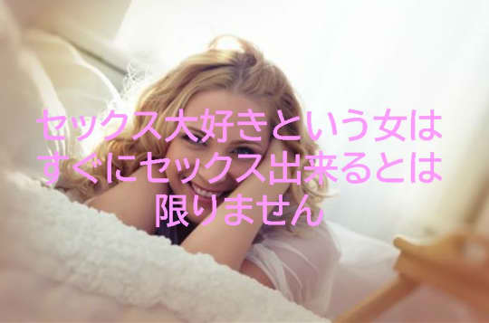 この違いを見極めるのは結構難しいのですが、ただのセックス大好きという女はすぐにセックス出来るとは限りませんので慎重に見極めて誘っていきましょう。