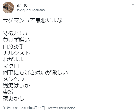 サゲマンにとってのセックスは「与えられるもの」で「与えるものではない」という認識なのです。TAKEはふんだんに要求しますがGIVEは極力出し惜しみをするという性格。