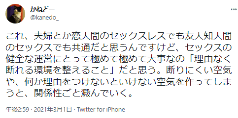 私たちのようにセックスのバランスが取れていれば問題ありませんが、友人夫婦は妻が求めても夫が断るといったパターンもあります。