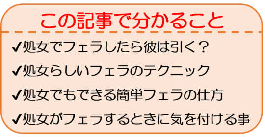 でもフェラをすることに対しては男性にとって嬉しい以外ありません。処女なのに頑張ってフェラをしてくれてるというその行為で愛情を感じてくれるようです。