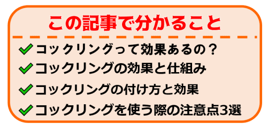 コックリングの効果を得るには付け方も大切です。ただ付けるだけでは最大限活かしきれませんからね。