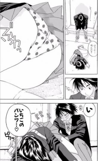 翌日に、「東城綾」を訪ねるも「おさげ髪」「黒縁メガネ」という地味ないでたちであったため、屋上で出会った「いちごパンツ」の女の子ではないと思い込んでしまいます。