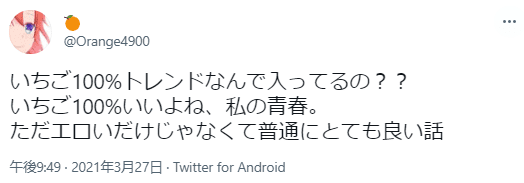 「いちご100%」というタイトルになぞらえて、あなたたち全員が「いちご100%」と言えるほど「キュート」だよ!と語りかけたいぐらいなのです!