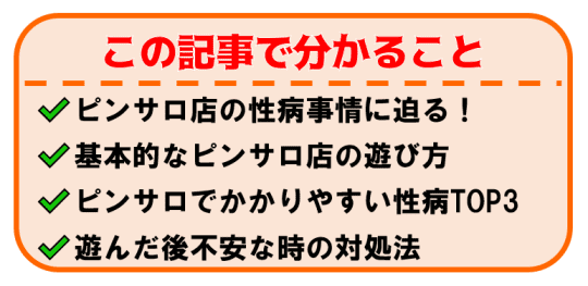 ピンサロは格安料金で気軽に遊べる風俗店ですが、性病のリスクが高いことはご存知でしょうか?ピンサロの常連客として通い詰めている僕が、性病を防ぐために気を付けていることや性病かも?と不安に感じたときの対処法をご紹介します!リスクを知っておくことが大切ですよ!