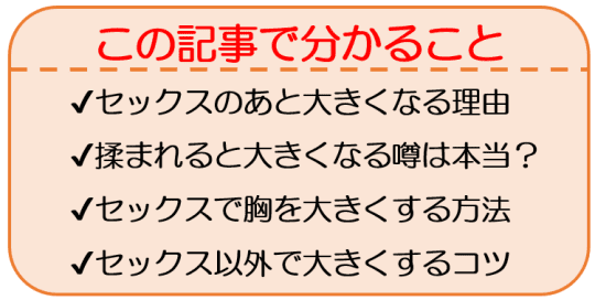 あなたはセックスをした後、「なんだかおっぱいが大きくなったような気がする…」と感じた事はありませんか?でも気のせいだとスルーしている人も多いでしょう。