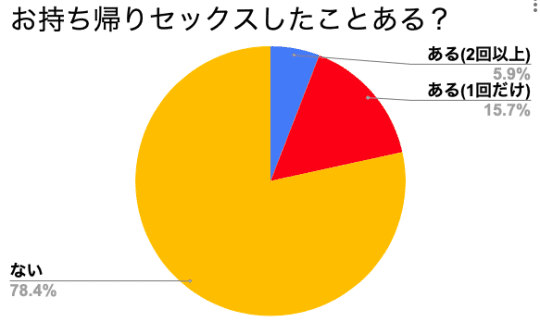 なんと、ほぼ8割の人がお持ち帰りセックスを経験したことがないんです。