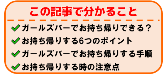 ではここからはガールズバーでお持ち帰りする手順について説明していきましょう!