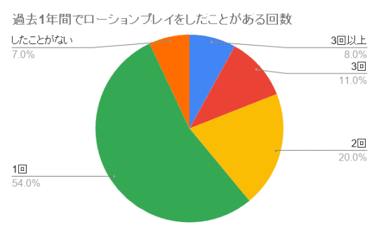 ローションに関して上記の結果を見ると、過去1年間で約半分の人が1度しかローションを使ってセックスをしていないことがわかります。また、しても2回しかしていない人が多く、3回やそれ以上ローションを使ってセックスした人はとても少ないということがわかります。