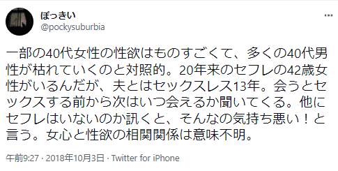 性欲があるのに、相手にしてもらえない、そんな寂しさがあるんでしょうね(笑)