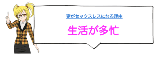 共働き夫婦が多くなり、子育てに仕事に家事とやる事が多すぎて夫にまで手が回らなくなり、体力的精神的に余裕がなくなりセックスレスになってしまうパターンです。