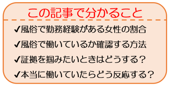 あなたの彼女だけではなく、周りにいる友達も実はこっそりと風俗の世界を経験したことがあるのかもしれません。