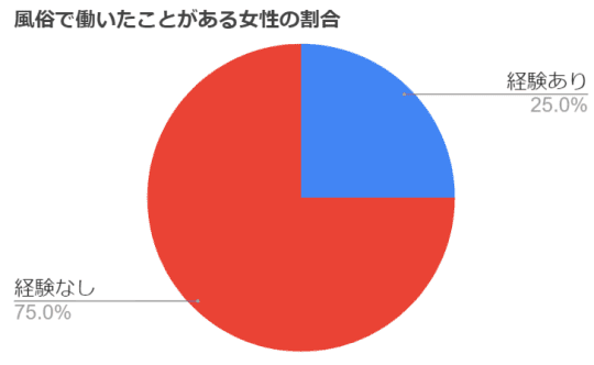 こちらのグラフを見てみましょう。この数字は実際に風俗で働いたことがある女性の割合です。なんと25%もの女性が風俗経験者という結果に。