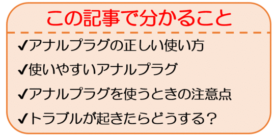 実際に使っている人も少ないでしょうし、使い方もなかなかわからない、誰に聞いていいかさえわからない、そもそもアナルプラグが何か知らない、という方も多いでしょう。