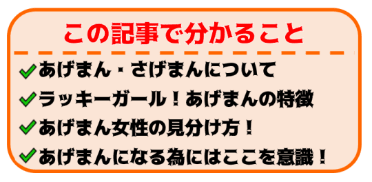 運が上がる女性を「あげまん」、運の下がる女性を「さげまん」と呼びます。