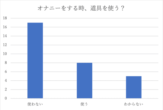 Twitterで男性30人を対象にアンケートでオナニーをする時にて道具を使用しているか調査を行いました。そのアンケート結果によると多くの人は道具を使わない、手でしていると答えています。