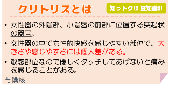下着の上からクリを触って、次に直接優しく触る、その後は少し強めに触るって感じにすると何倍も気持ちよくなれる♡(25歳・ソープ嬢)