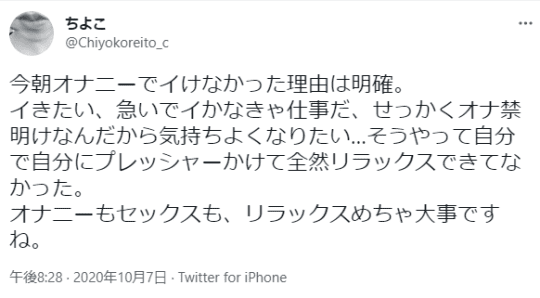 リラックスできないと、気持ちよくもなれないよ。(31歳・主婦)