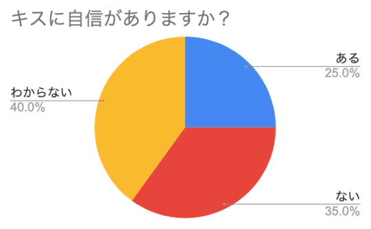 キスに自信があると答えた方は全体の25%ほど。