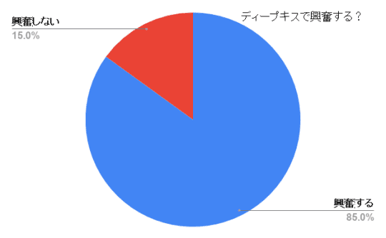 8割以上の男性が「興奮する」と答えているなら、誰とディープキスをしてもほぼ興奮すると思って構いませんね!(笑)