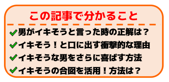 セックスをしていてパートナーがイク時に「イキそう…」と言ってきたらアナタはどう反応していますか?男性が「イキそう」と口に出す理由や、アナタの返答によってもっと喜んでもらえるようなオススメの言葉等をご紹介していきたいと思います♪
