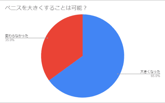 35%の方がペニス大きくしようとしたが変わらなかったということは、やり方や遺伝的なこともあり大きく左右することも分かりますね。。
