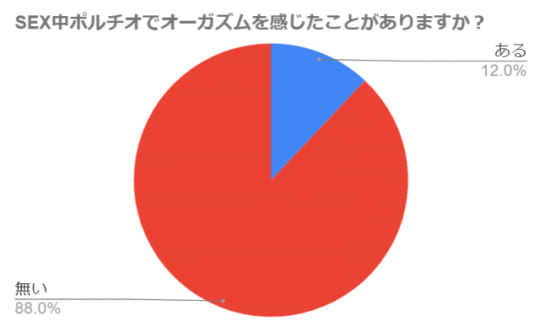 上のグラフは20代から40代の女性に聞いたものなのですが、そんなセックス盛りの女性の中でも、ポルチオでオーガズムを感じることができる女性は12%しかいないんです!