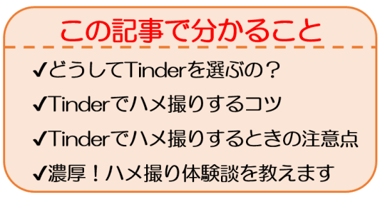そんな経験のなかでTinderでハメ撮りができるコツを紹介していきます。