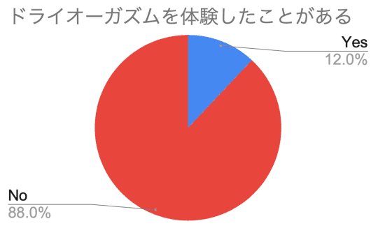 この記事をご覧になっている方はエネマグラでドライオーガズムを目指しているのだと思いますが、ある調査によると、何らかの形でアナニーしている男性のうち、ドライオーガズムを経験したことがあるのは12%にとどまっていたそうです。