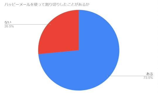 こちらは、30代~50代の男性に「ハッピーメールを使って割り切りしたことがあるか」とアンケートを取った結果です。