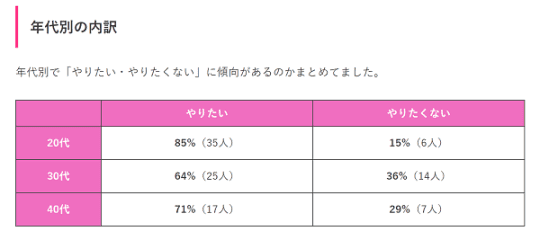 さらに年代別で見てみると、好奇心旺盛な20代がダントツでやりたいと言っています!!