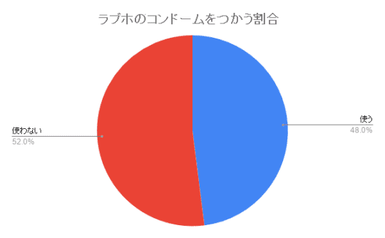 ラブホのコンドームを使わない人は全体の52.0%となっていますよ。どうですか?意外な結果だったでしょうか?