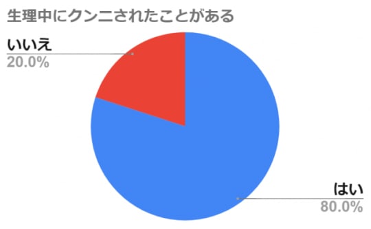 生理中にクンニされたことがないという方がほとんどでしたが、それでもわずかに生理中にクンニされたことがあるという人がいる結果になりました。