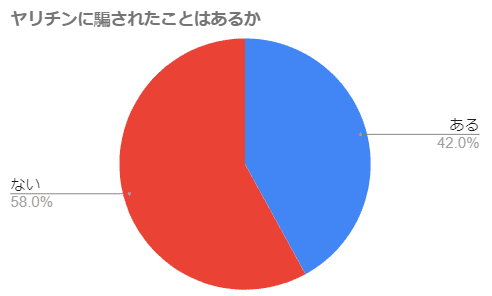 実際に「ヤリチンに騙されたことはあるか」を女性100人を対象にアンケートを取ってみたところ、意外と多くの人があると答えていたんです。
