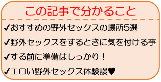 *この記事は野外セックスにおいて犯罪を推奨している記事ではありません。