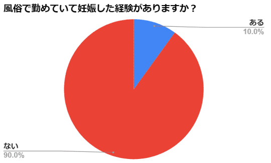 このグラフは都内の風俗店に勤務する風俗嬢50人に、風俗で妊娠してしまったことがあるかどうか調査した結果になります。