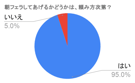 データを見てわかる様に、95%の女性が「朝フェラしてあげるかどうかは、頼み方次第で決める」と、回答しています。