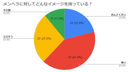 メンヘラのイメージとして一番多いのは怖いというものでした。次いでエロそうという印象です。
