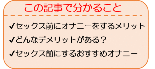 今回はセックス前のオナニーの効果や悪い点を紹介するので、ぜひ参考にしてみてください。