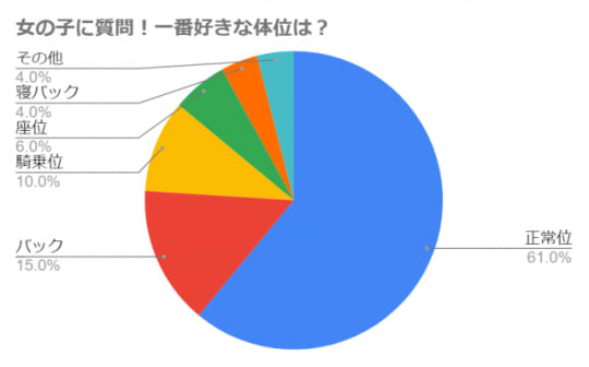 やっぱり一位は「みんな大好き正常位」ですよね!なんと60%以上の女性が正常位が一番好きなのだそうです♡