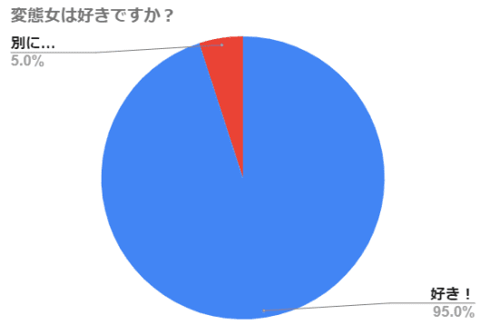 SNSを使って男性80人に『変態女性は好きですか?』と聞いてみたところ、『好き!』と答えた男性は95%。