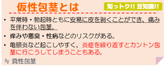 自力で治す場合は、剥く癖をつけて普段から意識する方がよいでしょう。