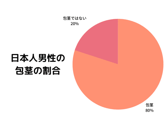 するとなんと「80%」の方が「包茎」だということがわかりました。日本人男性はほぼ包茎ということになります!