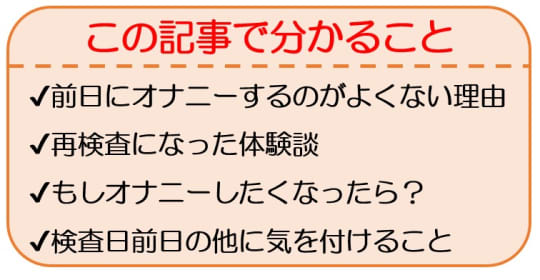 前日にオナニーをしていたけれど、再検査に呼ばれたことがない。なんて人も中にはいらっしゃると思います。