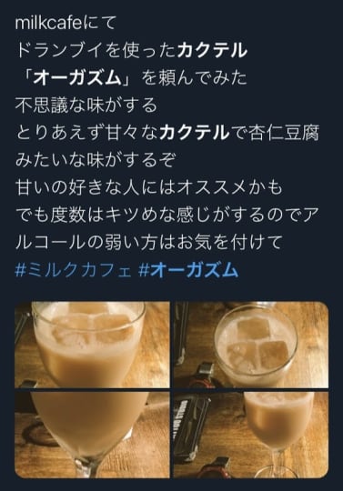 オーガズムは名前は刺激的でまるでその名の通りセックスを連想させますが、味はとても甘く、少し不思議な味になります。