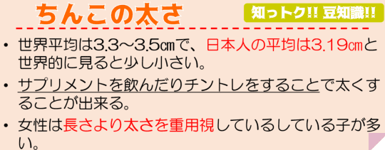 ちなみに、日本人の亀頭の平均の太さは、3.53cmらしいよ!