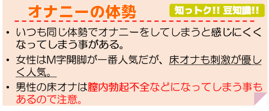 実際にオナニーをする場所を考えると、入眠前がダントツで多いので、うつ伏せオナニーは状況的に、誰にとっても取り入れやすいオナニー方法と言う事ができます。